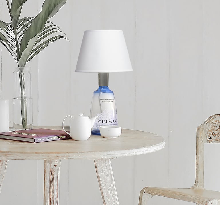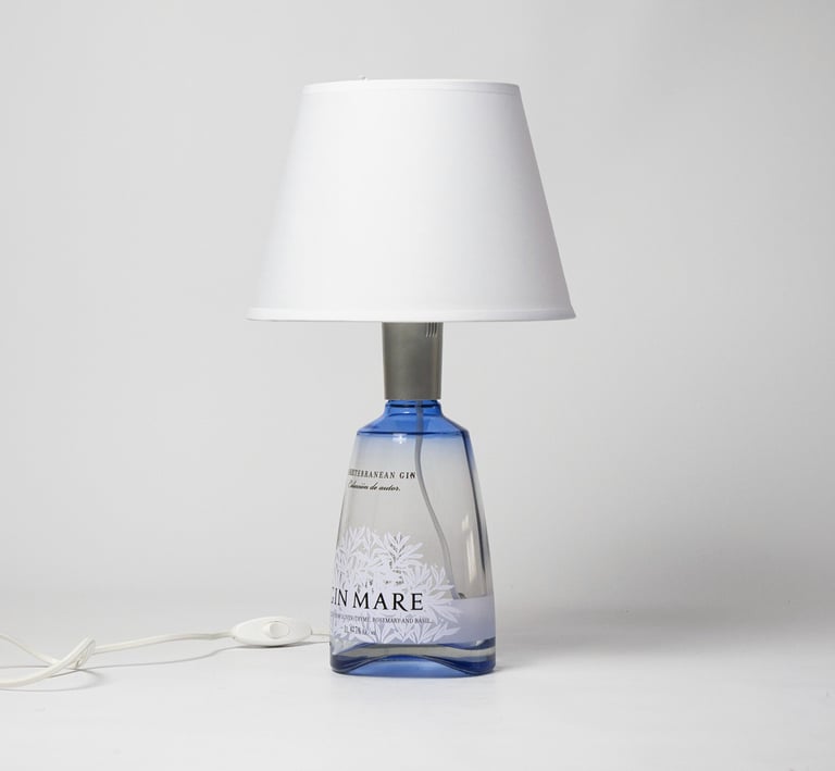 Questa lampada, realizzata con l’iconica bottiglia azzurra di Gin Mare, porta con sé il profumo del Mediterraneo e un’eleganza sobria e contemporanea.